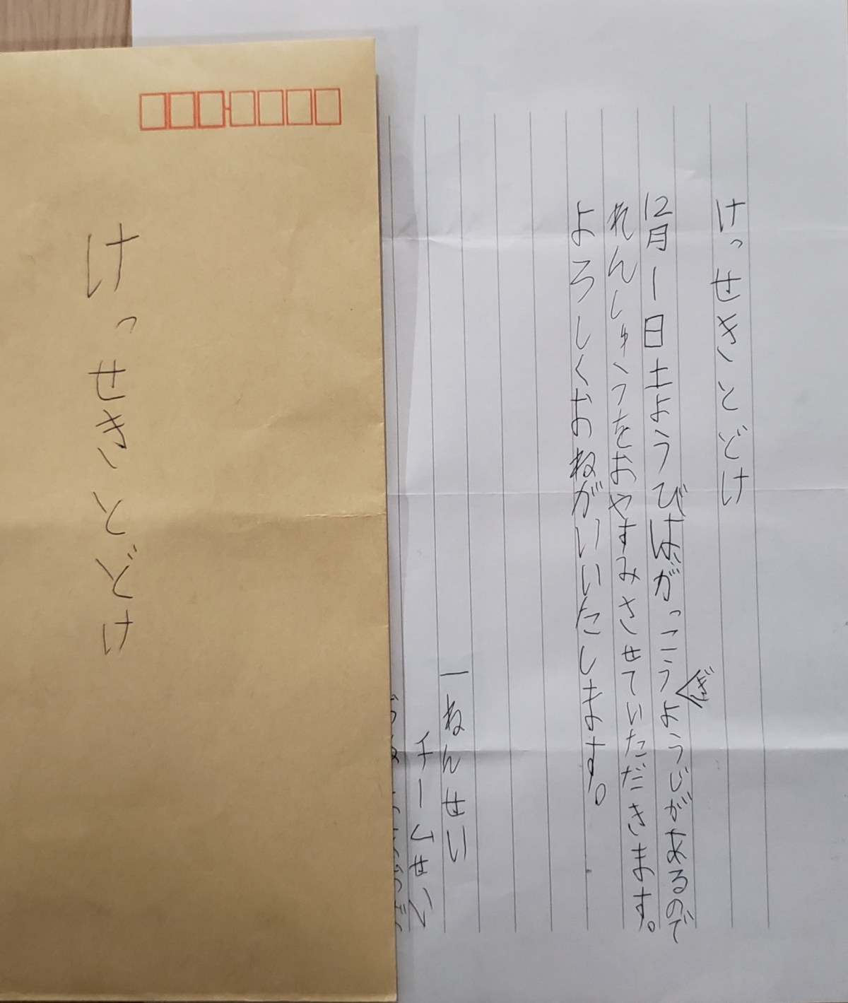 しかも封筒に入れて!?
